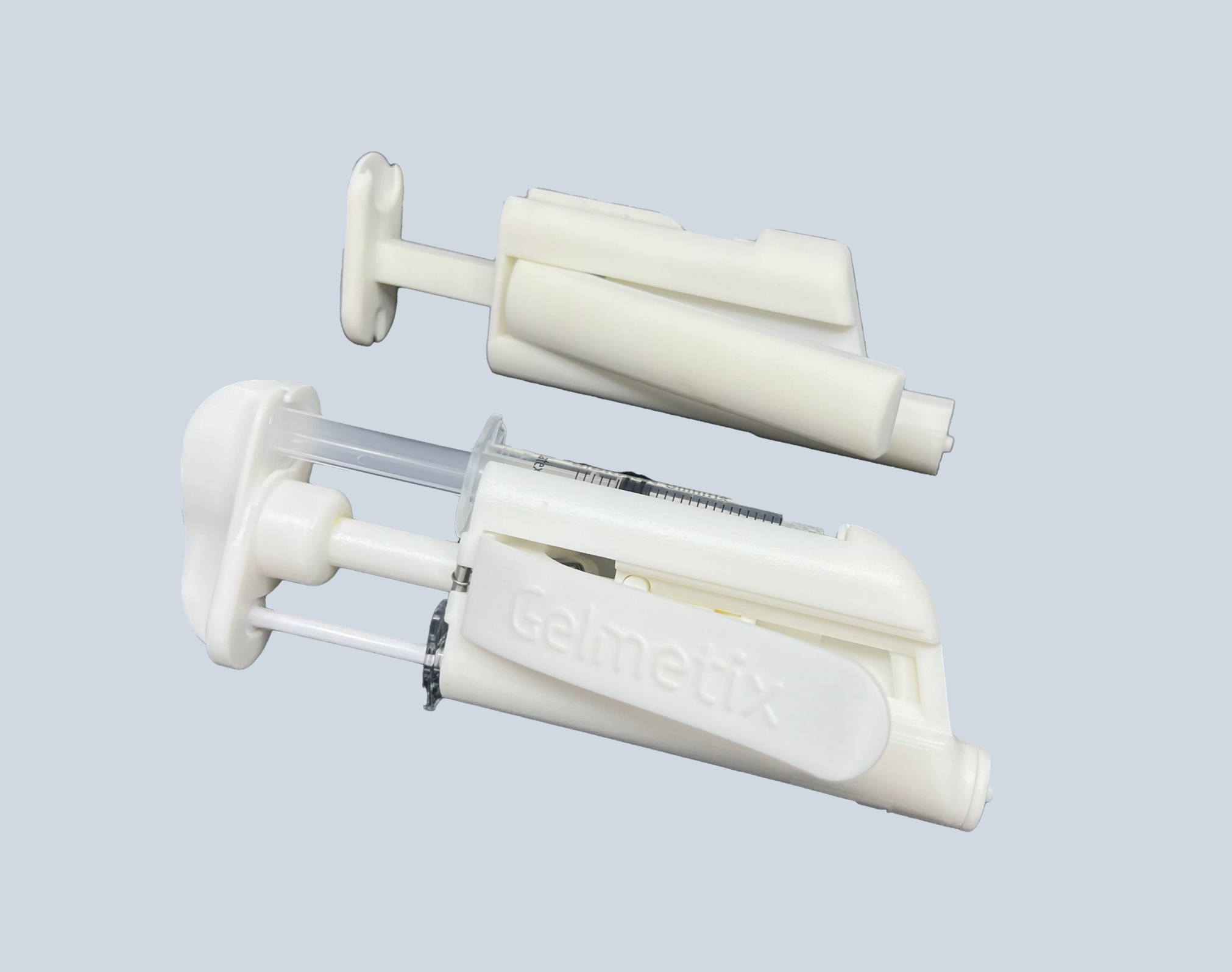 Gelmetix received two different applicators for use in the further development of the polymer gel. The 3D printing technology enabled rapid design review and successful functional tests for the mixing and application of the polymer gel. The high pressure inside the device was also successfully controlled to maintain the application force at a low level.